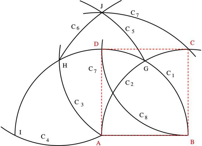 | Keywords: Square with compass only.svg Construction with compass of a square from its side AB Construction d'un carré au compas à partir de son côté AB Konstrukton von einm Quadrat mit Zirkel die Seite AB is bekannt self-made with xfig 2006 August 29th Régis Lachaume Public Domain Compass construction |