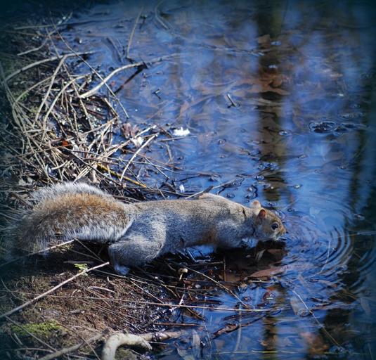 Keywords: squirrel drink water animal wildlife nature drinking wild tail fur thirsty gray
