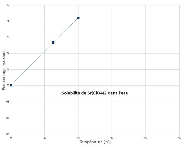Keywords: Sr(ClO4)2 Solubilite dans eau.png fr Solubilité de Sr ClO4 2 dans l'eau en fonction de la température Créée par mes soins avec OpenOffice org Calc et The Gimp d'après http //www hbcpnetbase com/ Handbook of Chemistry Physics Epop Check categories 2009 May 2 fr wikipedia Perchlorate_de_strontium Chemistry 2 Strontium compounds Perchlorates |