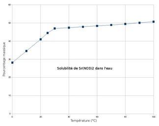 | Keywords: Sr(NO3)2 Solubilité dans eau.png fr Solubilité de Sr NO3 2 dans l'eau en fonction de la température Créée par mes soins avec OpenOffice org Calc et The Gimp d'après http //www hbcpnetbase com/ Handbook of Chemistry Physics Epop Sr NO3 2 Solubilité dans eau-zh png Strontium nitrate |