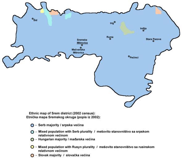 | Keywords: Srem ethnic2002.png en Ethnic map of Syrmia District - 2002 census data by settlements sr Етничка мапа С емског ок уга - попис из 2002 подаци по насељима own PANONIAN Cc-zero References Popis stanovništva domaćinstava i stanova u 2002 Stanovništvo nacionalna ili etnička pripadnost - Podaci po naseljima knjiga 1 Republika Srbija - Republički zavod za statistiku Beograd februar 2003 Slobodan Radovanović Geografski atlas Magic Map Smederevska Palanka 2001 Školski geografski atlas Intersistem Kartografija Beograd 2004 Denis Šehić - Demir Šehić Geografski atlas Srbije Beograd 2007 http //commons wikimedia org/wiki/File Census_2002_Serbia _ethnic_map_ by_localities png Syrmia District Maps of districts of Vojvodina Demographic maps of Vojvodina Maps in Serbian |