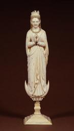 | Keywords: Sri Lankan - Virgin of the Immaculate Conception - Walters 71341.jpg The Virgin's mantle falls in the elegant linear folds of Indian sculpture The native style and facial features are smoothly adapted to the Christian apocalyptic iconography of the Virgin who is represented standing on a crescent moon With little reference to the body beneath the robes her physical energy is directed into the peace and serenity of prayer Native and European vocabularies are in dialogue Christianity came with the Portuguese in 1505 Known to Europeans in the 17th century as Ceylon the island became officially known as Sri Lanka in 1972 ca 1690 1710 carved ivory with gilt and polychromy cm 25 7 accession number 71 341 8751 Don Marcello Massarenti Collection Rome 1897 catalogue vol II no 478 as a Florentine work of the 15th century Henry Walters city Baltimore Walters Art Museum Henry Walters Acquired by Henry Walters with the Massarenti Collection 1902 place of origin Ceylon in present-day Sri Lanka Walters Art Museum license Art of India in the Walters Art Museum Baroque sculpture in the Walters Art Museum Statues in Sri Lanka Media contributed by the Walters Art Museum needs category review |
