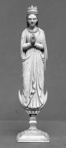 | Keywords: Sri Lankan - Virgin of the Immaculate Conception - Walters 71341 (2).jpg The Virgin's mantle falls in the elegant linear folds of Indian sculpture The native style and facial features are smoothly adapted to the Christian apocalyptic iconography of the Virgin who is represented standing on a crescent moon With little reference to the body beneath the robes her physical energy is directed into the peace and serenity of prayer Native and European vocabularies are in dialogue Christianity came with the Portuguese in 1505 Known to Europeans in the 17th century as Ceylon the island became officially known as Sri Lanka in 1972 ca 1690 1710 carved ivory with gilt and polychromy cm 25 7 accession number 71 341 8751 Don Marcello Massarenti Collection Rome 1897 catalogue vol II no 478 as a Florentine work of the 15th century Henry Walters city Baltimore Walters Art Museum Henry Walters Acquired by Henry Walters with the Massarenti Collection 1902 place of origin Ceylon in present-day Sri Lanka <gallery> File Sri Lankan - Virgin of the Immaculate Conception - Walters 71341 jpg </gallery> Walters Art Museum license Art of India in the Walters Art Museum Baroque sculpture in the Walters Art Museum Statues in Sri Lanka Media contributed by the Walters Art Museum needs category review |
