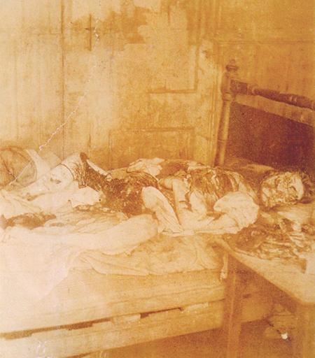 Keywords: Srkelly.jpg Police photograph of the murder scene of Mary Jane Kelly the 5th canonical victim of Jack the Ripper Foto policial de la escena del asesinato de Mary Jane Kelly la quinta víctima de Jack el Destripador Polizeiphoto des Tatortes von Mary Jane Kelly dem fünften Opfer von Jack the Ripper Фотог афия убитой э и Джейн Келли 5-й же твы Джека Пот ошителя сделанная полицией на месте п еступления Cinayetin Polis Tarafından çekilmiş fotoğrafı Mary Jane Kelly Karındeşen Jack tarafından katledilen 5 kurbandır Donated to the Public Record Office Kew Reference MEPO 3/3155 in 1988 from an anonymous private collection presumed to originate from the City of London police archives Ref No NSY/MJK1 Not published before 1988 see http //www casebook org/dissertations/dst-kelly html Casebook Jack the Ripper A similar or identical picture was published on page 257 of Vacher l'Eventreur et les Crimes Sadiques 1899 by Alexandre Lacassagne Lyons/Paris see Casebook; and pdf of the page from the original French publication http //gallica bnf fr/ark /12148/bpt6k77016g image f270 City of London police 1888-11-09 This image is in the public domain in the United Kingdom because it was first published more than 70 years after its creation and so was in the public domain at the time of first publication http //www copyrightservice co uk/copyright/p01_uk_copyright_lawhttp //www museumscopyright org uk/private pdf This image is in the public domain in the United States because it is an anonymous or corporate work created over 120 years ago that was published without a copyright notice and without a subsequent copyright registration and was in the public domain in its country of origin at the time of first publication PD-old Mary Jane Kelly |