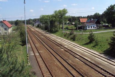 Keywords: Srní nádraží 1.jpg cs Kolejiště stanice Srní u České Lípy vpravo budova stanice own Zákupák 2011-05-22 50 38 9 306 N 14 34 57 633 E region CZ Srní u České Lípy Srní u České Lípy train station