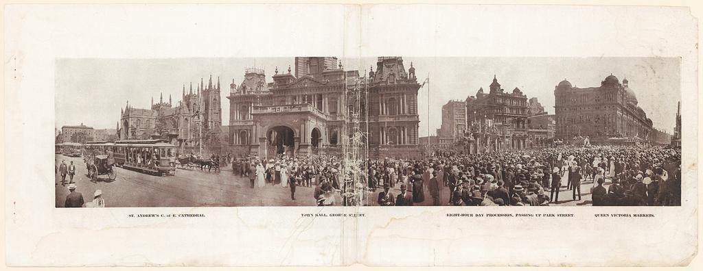 | Keywords: archives state records nsw staterecordsnsw newsouthwales blackandwhite sydney monochrome black and white Title: St Andrews C of E [Church of England] Cathedral. Town Hall George Street. Eight-hour day procession passing up Park Street Dated: c.1915 Digital ID: NRS20499_a050_000020 Series: NRS 20499 Most up-to-date Sydney panoramic views Rights: No known copyright restrictions www.records.nsw.gov.au/about-us/rights-and-permissions We'd love to hear from you if you use our photos/documents. Many other photos in our collection are available to view and browse on our website using Photo Investigator. Title: St Andrews C of E [Church of England] Cathedral. Town Hall George Street. Eight-hour day procession passing up Park Street Dated: c.1915 Digital ID: NRS20499_a050_000020 Series: NRS 20499 Most up-to-date Sydney panoramic views Rights: No known copyright restrictions www.records.nsw.gov.au/about-us/rights-and-permissions We'd love to hear from you if you use our photos/documents. Many other photos in our collection are available to view and browse on our website using Photo Investigator. |