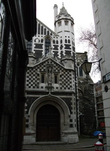 Keywords: St Bartholomew the Great north door.JPG en St Bartholomew the Great church in the city of London North door seen from Rising Sun Court own Sandpiper 2011-01 St Bartholomew-the-Great Cc-zero