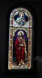 Keywords: St. Benedict Nebraska City NW window 1.JPG Nebraska City Nebraska northwest-facing window in entrance lobby northeast of front door of church Church is oriented northwest-southeast with the main entrance at the northwest end and the altar at the southeast end 2012-03-14 own Ammodramus cc-zero Uploaded with UploadWizard Pictures by Ammodramus Taken with Panasonic Lumix DMC-FZ20 St Benedict's Church Nebraska City Nebraska windows Saint James the Less on stained glass windows