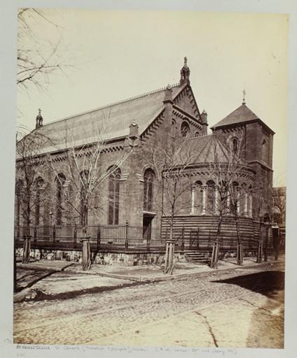 | Keywords: pennsylvania philadelphia church cherry street cherrystreet john notman johnnotman architect albumen 1870 drawing outdoor photo border View of south and east facades of Romanesque Revival church. Church property is slightly elevated from sidewalk level and delineated by stone and iron fence. Church constructed between 1855 and 1859 after designs of Philadelphia architect John Notman. Albumen print. View of south and east facades of Romanesque Revival church. Church property is slightly elevated from sidewalk level and delineated by stone and iron fence. Church constructed between 1855 and 1859 after designs of Philadelphia architect John Notman. Albumen print. |