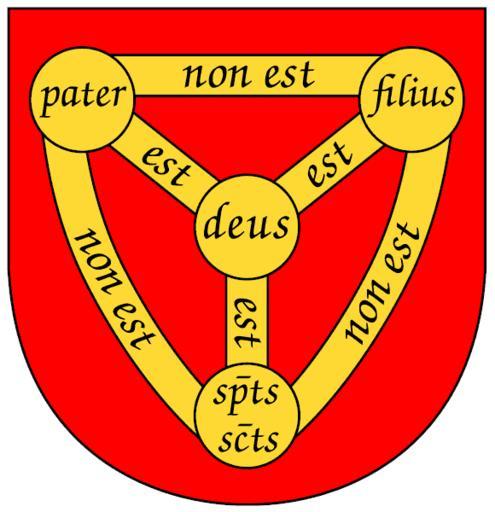 | Keywords: St-Faith-Arms.png  St Faith Virgin and Martyr of Agen France in the late medieval Harleian Manuscript 5852 as reported in On Sacred Heraldry by E L Blackburne attached as Appendix II to Emblems of the Saints By which they are Distinguished in Works of Art by F C Husenbeth edited by Augustus Jessopp 3rd ed 1882 Consists of a yellow Shield of the Trinity diagram on a red shield for a heraldic blazon see the Shield of the Trinity article The book Saints Signs and Symbols by W Ellwood Post 1962 gives a variant version with a yellow Shield of the Trinity diagram on a blue shield For an alternative artistic rendering of the diagram see http //www gocek org/christiansymbols/ For a version of the diagram with lettering on white not yellow see Image Shield-Trinity-medievalesque png / Image Shield-Trinity-medievalesque svg 2005-11-29 Own -- This graphic was generated by means of the following PostScript code note that this program references the Zapf Chancery Medium Italic font which is part of the Basic 35 Postscript fonts but not the Basic 14 <pre> /L rlineto def/m moveto def/x 0 0 def/c newpath 60 0 360 arc gsave 1 85 2 setrgbcolor fill grestore stroke def/v rmoveto def/M xmakefont setfont def/r rotate def 2 75 setlinewidth/t /ZapfChancery-MediumItalic findfont def gsave 1 035 dup scale 563 2318840 413 309179 m 0 285 724637 L -529 0 L 0 -285 724637 L 0 -5 0 -5 1 -17 rcurveto 16 -192 162 -248 262 -248 rcurveto 4 0 L 100 0 245 56 261 248 rcurveto 1 12 1 12 1 17 rcurveto gsave 1 x setrgbcolor fill grestore stroke grestore 9 1875 28 translate/X t60 0 -6 60 M def/Z X 49 5 0 v non e show 7 0 v st show def/W X 14 -1 75 v e show 7 0 v st show def 95 587 575 075 m 180 598 -144 434 L 0 -228 241 L 47 63 0 L 0 228 241 L 180 587 144 434 L -23 815 41 25 L -180 587 -144 434 L -181 137 144 434 L gsave 1 85 2 setrgbcolor fill grestore stroke gsave 0 1 translate 514 641 m -429 0 L -25 -18 L 2 -77 15 -165 55 -244 rcurveto 39 -77 98 -159 160 -202 rcurveto 49 0 L 62 42 121 125 160 202 rcurveto 40 79 54 166 56 243 rcurveto 491 594 m -3 -53 -15 -125 -49 -194 rcurveto -37 -74 -92 -153 -142 -185 rcurveto -50 32 -106 111 -143 185 rcurveto -34 69 -45 141 -48 194 rcurveto closepath gsave 1 85 2 setrgbcolor fill grestore stroke 1 x setrgbcolor 57 628 m 0 -8 L 8 0 L 0 8 L fill x 0 setrgbcolor 174 603 75 m Z gsave 62 r 420 -237 m Z grestore gsave -62 r -387 292 m Z grestore grestore 300 444 391 c 110 85 590 7 c 489 15 590 7 c 300 227 4 c gsave 38 64 r 583 145 5 m W grestore gsave -38 64 r -206 520 3 m W grestore gsave -90 r -381 288 m W grestore t 54 0 -5 4 54 M 60 584 m p show - 5 0 v ater show 442 584 m \256lius show 259 241 5 m spt show 6 0 v s show 280 5 242 m \305 show 265 187 m sct show 6 0 v s show 282 187 5 m \305 show 246 431 75 m t61 5 0 -6 15 61 5 M 1 5 0 deu ashow 1 5 0 v s show showpage EOF</pre> AnonMoos wikipedia en <gallery>Image Shield-Trinity-medievalesque png Image Shield-Trinity-medievalesque svg</gallery> en wikipedia AnonMoos Original upload log page en wikipedia St-Faith-Arms png 2005-11-29 02 08 AnonMoos 580×600 16776 bytes <nowiki>Arms attributed to St Faith Virgin and Martyr of Agen France in the late medieval Harleian Manuscript 5852 as reported in On Sacred Heraldry by E L Blackburne attached as Appendix II to Emblems of the Saints By which they are Distinguished in</nowiki> 2005-11-29 17 12 AnonMoos 580×600 16763 bytes <nowiki>correcting slight error minor color tweaking </nowiki> version lost Saint Faith Trinity in heraldry Images with PostScript source code |