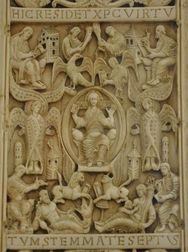 | Keywords: St Gallen Tuotilotafeln Kopie img02.jpg St Gallen Lapidarium Ausstellung Die Kultur der Abtei St Gallen Kopie der Tuotilotafeln vom Evangelium longum Cod Sang 53 Detail Majestas Domini own 2013-06 Photo WolfD59 Sculptures in Lapidarium St Gallen Reliefs in St Gallen Wikipedia Bodensee 10 St Gallen Codex Sangallensis 53 Reliefs of Christ in Majesty 890s works Reliefs of symbols of Evangelists | ||||