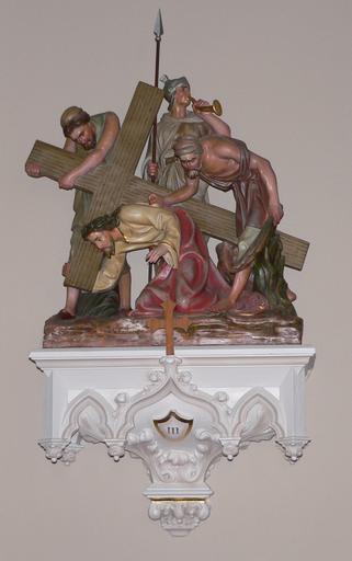 Keywords: St. Helena Immaculate Conception station 3.JPG St Helena Nebraska The Gothic Revival church was built in 1897 With the 1919 rectory it is listed in the National Register of Historic Places own Ammodramus 2010-11-01 Cc-zero Pictures by Ammodramus Taken with Panasonic Lumix DMC-FZ20 Immaculate Conception church St Helena Nebraska Station 3 Jesus falls the first time Stations of the Cross in the United States