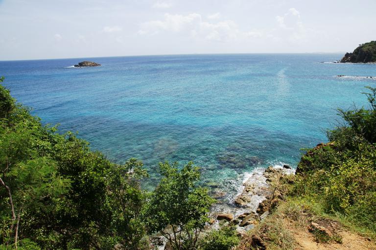 Keywords: Overlooking the Caribbean Sea from Ram Head Trail on a partly cloudy July day sea cliff island unitedstates stjohn caribbean virginislands