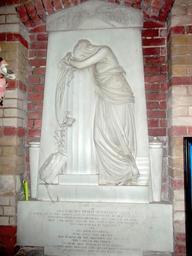 Keywords: St Michael Church and All Angels, Lyndhurst - memorial.JPG Lyndhurst Hampshire Designed and carved by John Flaxman The inscription reads To the memory of Sir Charles Philip Jennings Bar of Foxlease in this parish and of Duddlestone in the county of Salop Endowed with every dignified and amiable quality that can make private life respected and beloved This monument is erected by his afflicted sister who feels too deeply the worth of the brother she has lost the last of his family to speak that worth as it deserves yet cannot deny herself the melancholy consolation of inscribing this stone with his name <br/><br/>According to The Gentleman's Magazine 1789 Volume 58 Part 1 page 372 Sir Charles Philip Jennings died at Knightsbridge 22 April 1788 He had recently succeeded his father Sir Philip Jennings-Clerke 1st Baronet who died in January of that year Having no heir the baronetcy died with Sir Charles The sister and last of his family who erected this memorial may have been Miss Frances Jennings who according to The Gentleman's Magazine 1821 Volume 129 page 476 was the dau of the late Sir Philip Jennings Clerke and who died in Berlin 12 April 1821 2011-02-27 15 39 20 own Pasicles cc-zero Uploaded with UploadWizard John Flaxman Church monuments in Hampshire St Michael and All Angels Lyndhurst interior |