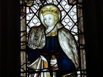 Keywords: St Neot Cornwall 021.JPG Church of St Neot St Neot Cornwall England own Mattana 2008-02-08 Images by Mattana-St Neot England Stained glass windows at St Neot Cornwall Saint Catherine of Alexandria on stained glass windows