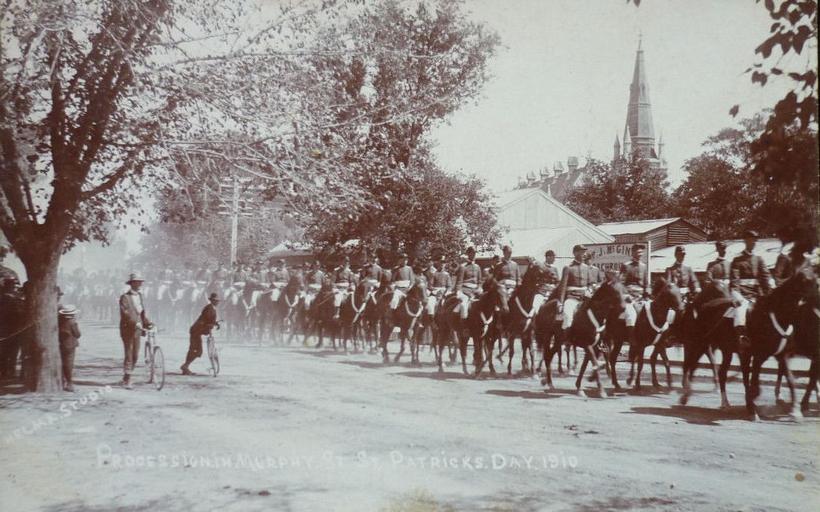 | Keywords: wangaratta victoria australia procession parade st patricks day stpatricksday st patricks church stpatrickschurch vintage 1910 soldiers horseback snow outdoor St. Patricks church can be seen in the background. St. Patricks church can be seen in the background. |