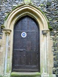 | Keywords: door architecture arch outdoor 85/9/104 MAIN ROAD 25-AUG-54 ST PAUL'S CRAY CHURCH OF ST PAULINUS GV II* The nave, N chapel and western part of the chancel are C11. S aisle added late C12 or early C13, and nave N side preserves evidence for a former chapel of the early C12 and a former N aisle of c1200. W tower late C12 or early C13. Some C15 windows, and roof partially of this date. Top of tower is C17. Extensively restored in 1859-61, and the S chapel added in 1863. MATERIALS Flint rubble with stone and brick dressings. Shingled spire, tiled roofs. PLAN Nave with S aisle and evidence for a former N aisle, chancel with N and S chapels, W tower EXTERIOR Externally, the church is notable for the clearly visible evidence for its development. In the N nave wall is the remains of a small C11 window, cut by the former N arcade, with the head turned in brick. Blocked, pointed arches, in the N nave wall are evidence for the former two-bay N aisle, probably of c1200. C15 windows of two lights with square heads and two trefoiled lights are inset into the blocking of the arches, and there is a small lancet to the E of the arcade. An early C12 blocked round arch in the W wall of the N chapel is the remains of a former aisle or porticus chapel that was subsequently incorporated into the N aisle and then demolished with it. The NE quoin of the N chapel is made of Roman tile, and the E gable has irregular stone banding and brick along the gable edges. The NW corner of the nave has a brick quoin, probably late C17 and contemporary with those on the tower. The S aisle W window has late C13-style Geometric tracery, heavily or entirely renewed in the C19. The S windows, also mostly C19, are C15 in style with two lights in square heads. The N chancel chapel has a C19 plate tracery window of two lights with a quatrefoil in the head. The C19 S chancel chapel has Early English-style windows. The chancel E window is C16 in style and has a very depressed head with three uncusped lights. Two stage W tower with a shingled broach spire, the lower part c1200, the upper part rebuilt or restored in the late C17. C17 brick buttresses on the lower stage and C17 quoins on the upper stage, with a stone string course separating the stages. The W door has a moulded arch with dogtooth ornament on nook shafts with foliate capitals. Above the W door is a window of uncertain date with a C19 plate tracery insert, and there are two small, round openings in the lower part of the second stage. There are narrow lancets in the N and S walls of the lower stage, and late C17 round headed windows with brick dressings in the upper stage. INTERIOR The interior is notable for the three-bay S arcade, which is in two distinct parts, both with round piers and pointed arches. The eastern bay is late C12 and has a flattened roll on the soffit of the arch and lively capitals with acanthus leaves and carved heads. The western two bays have a chamfer on the inner arch moulding and moulded capitals to the pier and W respond. The S chapel was added in 1863, and the arch between the aisle and the S chapel and from the S chapel to the chancel have C19 Early English-style foliate capitals on polygonal responds; the Early English style arch into the N chapel is similar. The two bay former N arcade, still visible internally, was added c1200 and was similar to the western bays of the S arcade. It was set in the western part of the nave wall, presumably to accommodate the lost or covered over opening to the former N chapel. The head of a blocked C11 window is visible above the former arcade at the E end, and the narrow rood loft door opens internally above the E end of the S arcade. There is no chancel arch. The chancel S windows have hood moulds, and the remains of a triplet of lancets are visible in the E wall. The tower arch is also c1200; above it is a two-light C15 style opening. The nave roof was damaged in a fire in 1968, but retains some late-medieval timber. PRINCIPAL FIXTURES There is a C13 coffin lid with a foliated cross in the S chapel, and one late C19 monument. There are no other historic fittings of note remaining in the church. HISTORY The dedication to St Paulinus, a C7 bishop of Rochester, is rare. A church is mentioned in the Doomsday book of 1086, and the present structure was built in the C11. In its original form it appears to have comprised a nave and short chancel with a N porticus chapel flanking the chancel. In the early C12 a N nave chapel was added to the W end of the N chancel porticus, the arch into which is still visible externally. The eastern bay of the S aisle was added in the late C12 and a few years later c1200 the remaining two bays of the S aisle were added. A two bay N aisle which incorporated or continued the N nave chapel was added at this time, and the W tower is also late C12 or early C13. The chancel was extended eastwards in the C13. The chancel arch was removed at an unknown, presumably medieval date, and the aisle windows were redone in the late C15; probably also at this time the S aisle was widened. The top of the tower was remodelled and buttresses added in the C17, and perhaps also at this time the N aisle was demolished, the arches blocked, and the former aisle windows reset in the blocking. The church was restored in 1859-61, and the S chapel was added in 1863. There was further work after a fire in 1968, and a C13 stiff-leaf capital is said to have been found during the restoration. The church became redundant in the late 1970s and has been stripped of its furnishings. The former font, a polygonal example of the C15, is now in St Martin, Chelsfield (Bromley, GL), and the good C19 lectern with a pelican in her piety is in St Mary, St Mary Cray (Bromley, GL). 85/9/104 MAIN ROAD 25-AUG-54 ST PAUL'S CRAY CHURCH OF ST PAULINUS GV II* The nave, N chapel and western part of the chancel are C11. S aisle added late C12 or early C13, and nave N side preserves evidence for a former chapel of the early