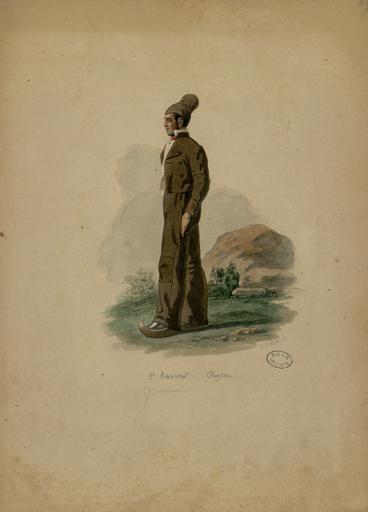 | Keywords: St. Sauveur - Paysan (Hautes Pyrénées) - Fonds Ancely - B315556101 A MAURICE 3 015.jpg Fait partie d'un recueil de planches lithographiées et aquarellées Les pl 13 14 15 ne semblent pas faire partie de la même série que les autres On note en haut de chacune de ces trois planches la mention France assortie d'un numéro et en bas à gauche l'intitulé Musée de costumes également assorti d'un numéro Ces trois planches ont été imprimées chez Moine Il est aussi fait mention en bas à droite de l'ancienne maison Aubert Les trois planches sont signées de trois graveurs différents Ancely René 1876 - 1966 Possesseur fre public domain domaine public B315556101_A_MAURICE_3_015 jpg image/jpeg 1 f de pl ; 30 cm http //numerique bibliotheque toulouse fr/collect/general/index/assoc//ark /74899/B315556101_A_MAURICE_3_015 dir/B315556101_A_MAURICE_3_015 jpg Bibliothèque municipale de Toulouse A-MAURICE 3-12 Ch Maurice http //catalogues toulouse fr/web2/tramp2 exe/do_keyword_search/log_in setting_key BMT1 servers 1home query p001476 Femme de Laruns - Vallée d'Ossau Basses Pyrénées Paysan de Laruns - Vallée d'Ossau Basses Pyrénées Vallée d'Ossau - Costume de deuil de femme Basses Pyrénées Femme de St Gaudens Dame béarnaise Vallée d'Ossau - Paysanne Basses Pyrénées Femme de Luz Hautes Pyrénées Paysanne de la Vallée d'Ossau Basses Pyrénées Paysan de Gavarni Hautes Pyrénées Cauteretz i e Cauterets porteur de chaise Pasteur de la Vallée d'Ossau Basses Pyrénées Grisette de Bayonne Pasteur de la Vallée d'Ossau Basses Pyrénées Douanier des montagnes Pyrennées i e Pyrénées vignette http //numerique bibliotheque toulouse fr/collect/general/index/assoc//ark /74899/B315556101_A_MAURICE_3_015 dir/B315556101_A_MAURICE_3_015_thumb jpeg by 1861 St Sauveur - Paysan Hautes Pyrénées B315556101_A_MAURICE_3_015 watercolor - paint - colors Vests Peasants in art Peasants from France National costumes in art Luz-Saint-Sauveur Men in art Jackets Trousers in art People with tuques in art French national costumes Clogs in art Scanned with i2s Digibook Suprascan 6002 RGB |