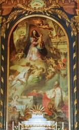 Keywords: St Stephen offers Hungary to Virgin Mary.jpg object history credit line accession number own scanned by Szilas from A magyar Szent Korona by Tóth Endre Szelényi Károly Kossuth 2000 Budapest PD-old-100 Holy Crown of Hungary in art Baroque religious paintings Paintings of Stephen I of Hungary Paintings of Madonna and Child in Hungary Hungary in history paintings 1775 paintings in Hungary Stephen I of Hungary and Patrona Hungariae Votive pictures Interior of the Cathedral Székesfehérvár |