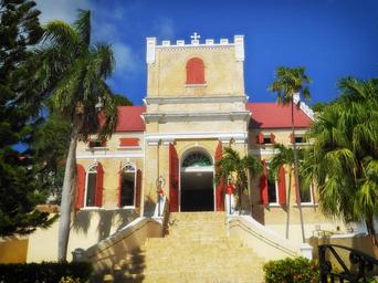 Keywords: st thomas virgin islands church faith religion palm trees tropics tropical landmark steps outside architecture