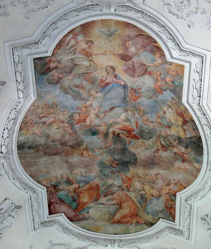 Keywords: St Trudpert Kirche Decke Chor Himmelfahrt und Krönung Mariens.jpg Pfarrkirche St Peter und Paul und St Trudpert ehemalige Klosterkirche des Klosters St Trupdert Gemeinde Münstertal Landkreis Breisgau-Hochschwarzwald<br /> Fresko im Chor Mariä Himmelfahrt und Marienkrönung von Francesco Antonio Giorgioli 1710 own own photograph 2008-04 Creator Francesco Antonio Giorgioli Photo Andreas Praefcke Baroque frescos in St Trudpert Schwarzwald Frescos of the Assumption of Mary Frescos of Coronation of Mary 1710 paintings Francesco Antonio Giorgioli Photos by User AndreasPraefcke |