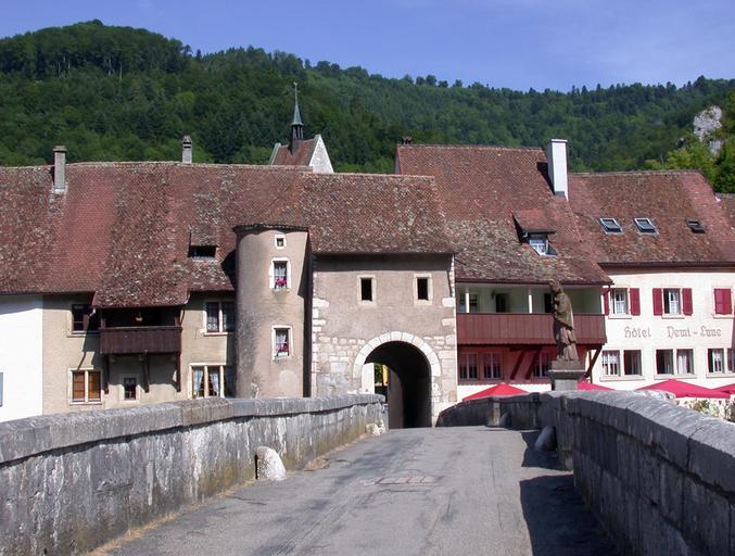 Keywords: St ursanne switzerland.JPG 9586 Bridge of Doubs and Porte Saint-Jean of Saint-Ursanne Switzerland MST Pont sur le Doubs Saint-Ursanne