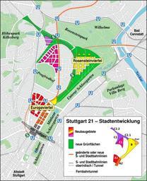 Keywords: Stadtentwicklung 1.svg de Grafische à bersicht über die durch das Bahnprojekt Stuttgart 21 freiwerdenden Flächen und ihre geplante Nutzung zur Stadtentwicklung Die Karte basiert auf Daten aus dem Rahmenplan Stuttgart 21 vom Gemeinderat der Stadt Stuttgart am 24 Juli 1997 beschlossen OSM-Karten mehreren Darstellungen des Realisierungs-Wettbewerbs RosensteinViertel 2005 und einem im Stuttgarter Rathaus aufgestellten Architekturmodell own Stoeffler 2010-11-18 Maps of project Stuttgart 21