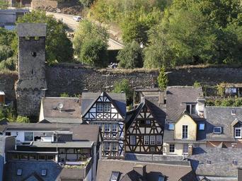 MAKE A MEME View Large Image StadtmauerCochem.jpg Stadtmauer mit Wehrtürmen und Fachwerkhäusern in Cochem Rheinland-Pfalz Deutschland City wall with fortification towers and timber framed buildings in Cochem Rhineland-Palatinate Germany sf 2006-08-15 2006 Thomas ...