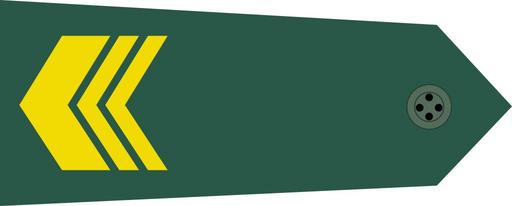 Keywords: Staff Sergeant rank insignia (ROC).svg zh-hant 中士; Zhōng Shi <ref name Act of Commission > Cite web Act of Commission for Officers and Noncommissioned Officers of the Armed Forces Commission Act for Officers and Noncommissioned Officers of the Armed Forces 陸海空軍軍官士官任官 例 Laws and Regulations Database Ministry of National Defense R O C http //law mnd gov tw/FLAWDAT0202 asp lsid FL005419 no http //archive is/PBV1 2012-07-09 2016-12-28 </ref> rank insignia Reflist 2016-10-22 File Sergeant rank insignia ROC jpg Raster file created by Elmor SVG file created by Oppashi other versions cc-zero Non-commissioned rank insignia of the Republic of China Army |