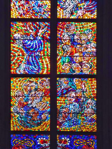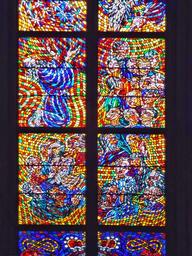 Keywords: glass church religion czech red yellow stained glass Window in Prague's St. Vitus' Cathedral Window in Prague's St. Vitus' Cathedral