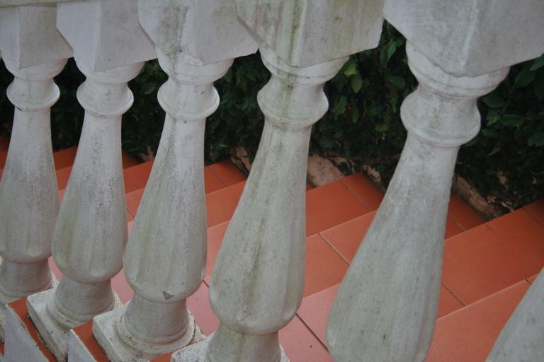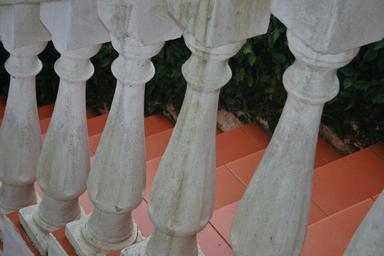 Keywords: staircase stairs steps red balustrade classic white parallel spaced