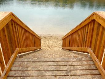 Keywords: staircase steps access stairway stairs construction climb structure timber down landscape outdoor water river