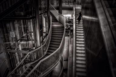 Keywords: stairs gradually architecture black down up building rise staircase