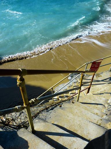 Keywords: stairs gradually finish away stair step rise water sea down railing