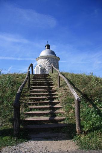 Keywords: stairs wooden chapel grass church nature heaven sky landscape clouds