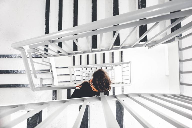 MAKE A MEME View Large Image stairway stairs interior modern down downstairs woman