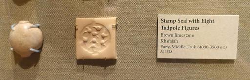 | Keywords: Stamp seal with eight tadpole figures, Khafajah, Early-Middle Uruk, 4000-3500 BC, brown limestone - Oriental Institute Museum, University of Chicago - DSC07198.JPG en Exhibit in the Oriental Institute Museum University of Chicago Chicago Illinois USA This work is old enough so that it is in the public domain Photography was permitted in the museum without restriction 2014-08-22 14 48 10 own Daderot other versions cc-zero Uruk Period stamp seals in the Oriental Institute Museum Uploaded with UploadWizard |