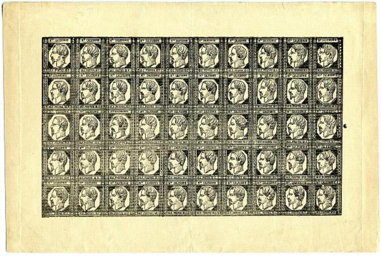 Keywords: Stamp sheet New Caledonia 1860.jpg en A sheet of 50 first New Caledonia stamps issued by Louis Triquéra in 1860 that depicted Napoleon III of France ru Лист из 50 пе вых почтовых ма ок овой Каледонии а ма ках выпущенных Луи Т ике а в 1860 году запечатлен аполеон III Personal stamp collection by Alexander N Korolev Louis Triquéra; scanned by Alexander N Korolev 1860 File New Caledonia stamp 1860 10s jpg File Stamp New Caledonia 1860 copy jpg File Stamp New Caledonia 1860 single jpg PD-old Stamps of New Caledonia Napoleon III of France on stamps 1860 stamps |