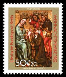 | Keywords: Stamps of Germany (Berlin) 1982, MiNr 688.jpg German stamp self-scanned 1982 Scanned May 2008 by User Nightflyer PD-old-100 PD-text Philately Ausgabepreis 50+20 Pfennig 1982-11-10 Wiese Offsetdruck 8 954 000 Ländercode-MiNr 688 Deutsche Bundespost Berlin stamps Grabower Altar Weihnachtsmarke Germany 1982 Grabower Altar 1982 Deutsche Bundespost Berlin stamps Grabower Altar Adoration of the Magi on stamps Meister Bertram Grabower Altar German stamps review keep Petri-Altar Grabower Altar Bruno K Wiese |