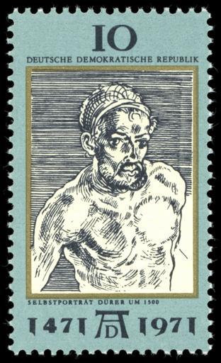 Keywords: Stamps of Germany (DDR) 1971, MiNr 1672.jpg Information 500 Geburtstag von Albrecht Dürer Selbstbildnis als Akt; Pinselzeichnung Detail Ausgabepreis 10 Pfennig First Day of Issue / Erstausgabetag 18 Mai 1971 Auflage 16 500 000 Entwurf Naumann Druckverfahren Offsetdruck Michel-Katalog-Nr Ländercode-MiNr 1672 Eigener Scan Bearbeitung Winter 2011 Hochgeladen und Bearbeitet von --Nightflyer <span class signature-talk >talk</span> 22 14 8 January 2011 UTC PD-old-100-1923 1971 stamps of the German Democratic Republic Albrecht Dürer on stamps German stamps review keep Self-portraits by Albrecht Dürer Horst Naumann |