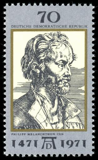 Keywords: Stamps of Germany (DDR) 1971, MiNr 1674.jpg Information 500 Geburtstag von Albrecht Dürer Bildnis des žPhilipp Melanchthon ; Kupferstich Ausgabepreis 70 Pfennig First Day of Issue / Erstausgabetag 18 Mai 1971 Auflage 1 600 000 Entwurf Naumann Druckverfahren Offsetdruck Michel-Katalog-Nr Ländercode-MiNr 1674 Eigener Scan Bearbeitung Winter 2011 Hochgeladen und Bearbeitet von --Nightflyer <span class signature-talk >talk</span> 21 37 4 February 2011 UTC PD-old-100-1923 1971 stamps of the German Democratic Republic German stamps review keep Engravings by Albrecht Dürer 1520-1528 Philipp Melanchthon on stamps Horst Naumann |