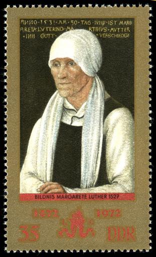 Keywords: Stamps of Germany (DDR) 1972, MiNr 1771.jpg Information 500 Geburtstag von Lucas Cranach d Ä Bildnis žMargarete Luther Ausgabepreis 35 Pfennig First Day of Issue / Erstausgabetag 4 Juli 1972 Auflage 4 000 000 Entwurf Naumann Druckverfahren Rastertiefdruck Michel-Katalog-Nr Ländercode-MiNr 1771 Eigener Scan Bearbeitung Frühjahr 2010 Hochgeladen und Bearbeitet von --Nightflyer <span class signature-talk >talk</span> 20 46 10 September 2010 UTC Gemälde PD-old-100 Rest PD-ineligible German stamps review keep 1972 stamps of the German Democratic Republic Female portraits by Lucas Cranach I Luther Margarete Paintings on stamps of Germany Horst Naumann 1527 paintings |