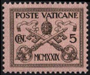 Keywords: StampVatican1929Michel1.jpg ru Пе вая почтовая ма ка Ватикана 1929 Personal collection Processed by A Sdobnikov 1929 PD-old Stamps of the Vatican City