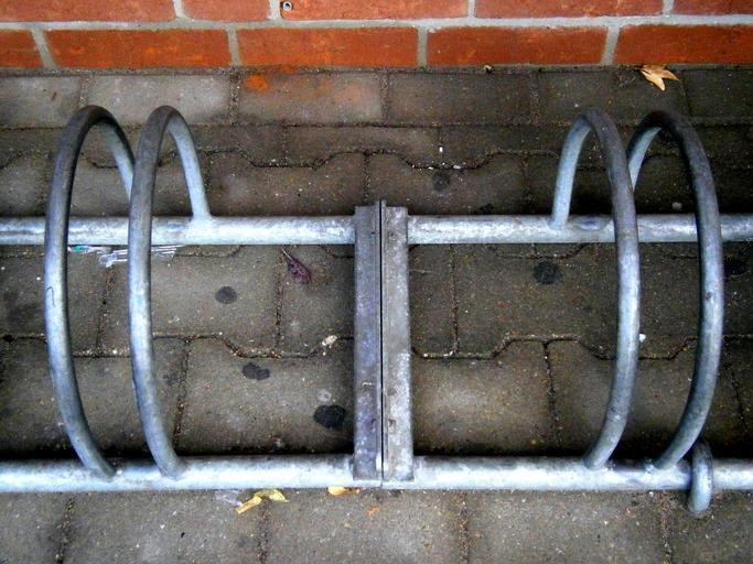 Keywords: stand bike racks bike turn off parking possibility park metal chrome silver side by side