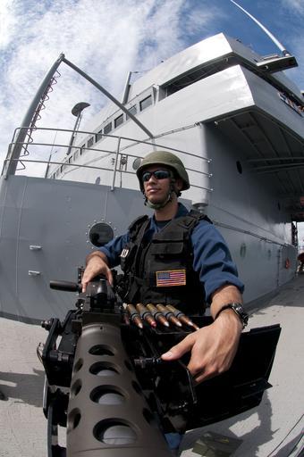 | Keywords: Standing guard 120903-N-CB621-052.jpg  en Fire Control Technician 1st Class Adam Gremp stands guard on a 50-caliber machine gun aboard the submarine tender USS Frank Cable AS 40 while pulling into port Frank Cable conducts maintenance and support of submarine and surface vessels deployed in the U S 7th Fleet area of responsibility U S Navy photo by Mass Communication Specialist 1st Class Jason C Swink 2012-09-03 Petty Officer 1st Class Jason Swink https //www dvidshub net/image/764676 120903-N-CB621-052 2012-10-21 15 51 SUBIC BAY PH PD-USGov-Military-Navy USS Frank Cable AS-40 Images from DoD uploaded by Fæ |