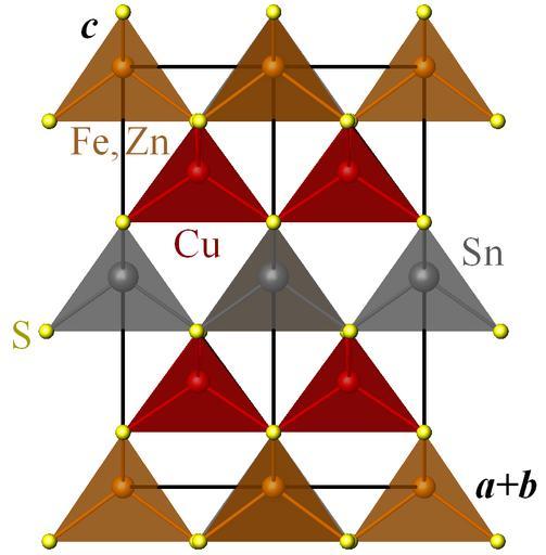 Keywords: Stannite.png en Crystal structure of stannite Cu2 Fe Zn SnS4 I-42m projected onto the a+b c plane own Perditax 2010-09-12 Crystal structures in space group number 121 Stannite Iron II sulfide Copper I sulfide Tin IV sulfide