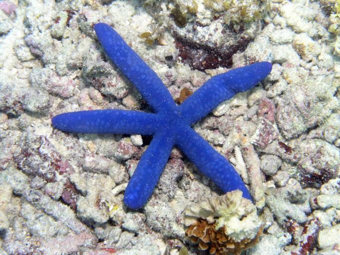 Keywords: starfish ocean floor sea sea star seascape water blue star linckia laevigata
