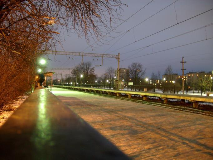 Keywords: Stariy Peterhof station.JPG Станция Ста ый Пете гоф вече ом Own 2008 Sasha Krotov Stariy Peterhof station
