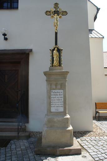 Keywords: Starovičky church detail.JPG en Starovičky a village in Břeclav District Czech Republic a cross in front of the church cs Starovičky okres Břeclav kříž před kostelem own Feťour 2011-06-03 Starovičky Wayside crosses in Břeclav District