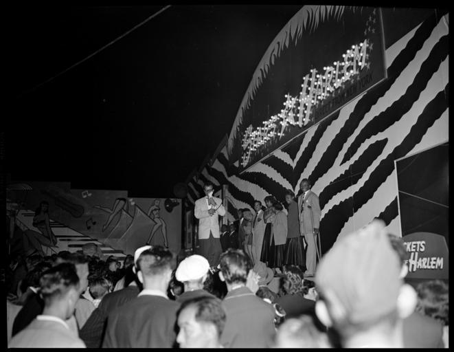 | Keywords: blackandwhite monochrome black and white Pacific National Exhibition Stars of Harlem preshow VPL 84703A Date: August 28, 1952 Photographer/Studio: Artray Content: Photo series A-G showing Pacific National Exhibition Gayway and games at night, ferris wheel, singers, Stars from Harlem, cotton candy, wheel of fortune, rubber ducks, wall of prizes Topic: Fairs Amusement parks Night Crowds Singers Banners Lighting - Special effects Organization: Pacific National Exhibition More information on our historical photograph collection: www.vpl.ca/historicalphotos Pacific National Exhibition Stars of Harlem preshow VPL 84703A Date: August 28, 1952 Photographer/Studio: Artray Content: Photo series A-G showing Pacific National Exhibition Gayway and games at night, ferris wheel, singers, Stars from Harlem, cotton candy, wheel of fortune, rubber ducks, wall of prizes Topic: Fairs Amusement parks Night Crowds Singers Banners Lighting - Special effects Organization: Pacific National Exhibition More information on our historical photograph collection: www.vpl.ca/historicalphotos |
